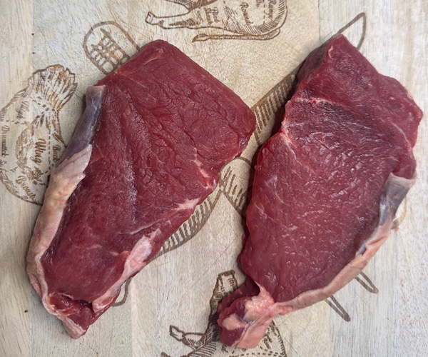Sourced from our grain-finished beef line, these steaks come from cattle raised on our family farm and finished on a clean, GMO-free grain ration. That finishing creates the beautiful marbling and rich, old-fashioned beef flavor folks love in a NY strip.